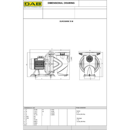 EUROSWIM 75 – Swimming Pool Pump – 0.75 HP – 230V- 5700GPH