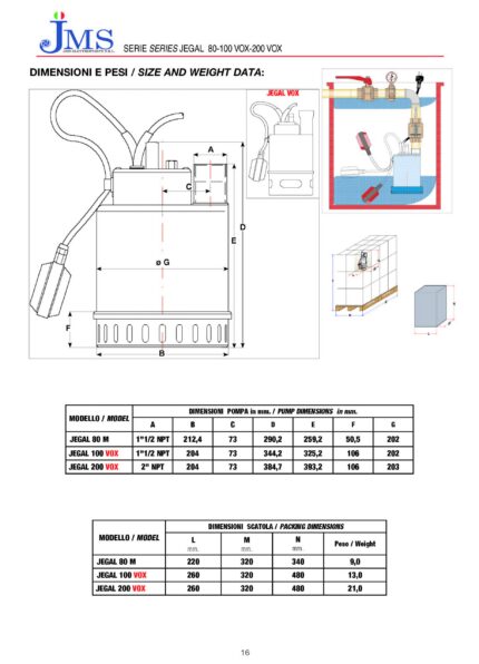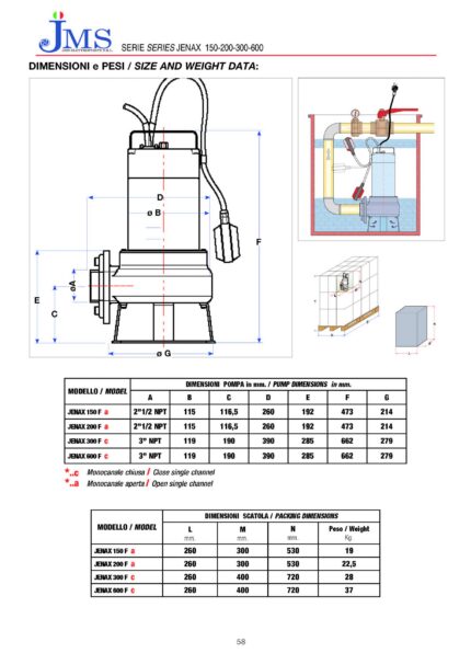 – 1.96 inch – JIGER 100 – 150 – 200. - Max Head: 49 ft.
