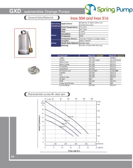 Gol Pumps – XD 15T40 – Sewage Pump -SS316- 5520 GPH – 1.5HP – Three Phase