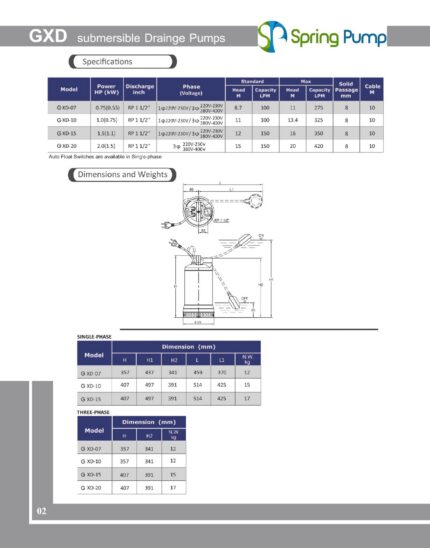 Gol Pumps – XD 07MA40 (110V)- Sewage Pump – 4320 GPH – 0.75HP – Single Phase
