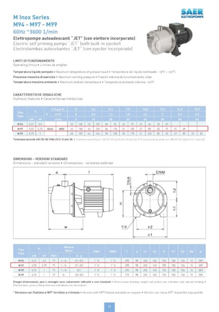 Speroni Self priming – Trash water Pump – HGM50 – 1,5 – 2HP – 9510 GPH – 2″ Single Phase